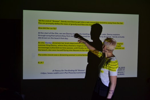 Part-theatre, part-standup, part-PowerPoint Presentation. One lecturer desperately tries to prove a popular ‘Grease’ fan theory: that Sandy drowns in the opening beach sequence and the rest of the film is her coma fantasy. Over the course of 13 scenes, 78 slides, and a flood of custom animations, the lecture warps…